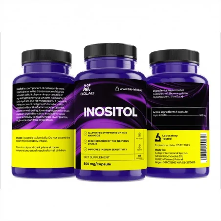 Inositol (vitamin B8) is a component of body fluids and cell membranes, is involved in the metabolism of fats and carbohydrates, participates in processes related to the proper functioning of the nervous and reproductive systems, has a beneficial effect on skin condition, has properties that support the body's natural immunity, and has been studied in the context of cellular sensitivity to insulin.