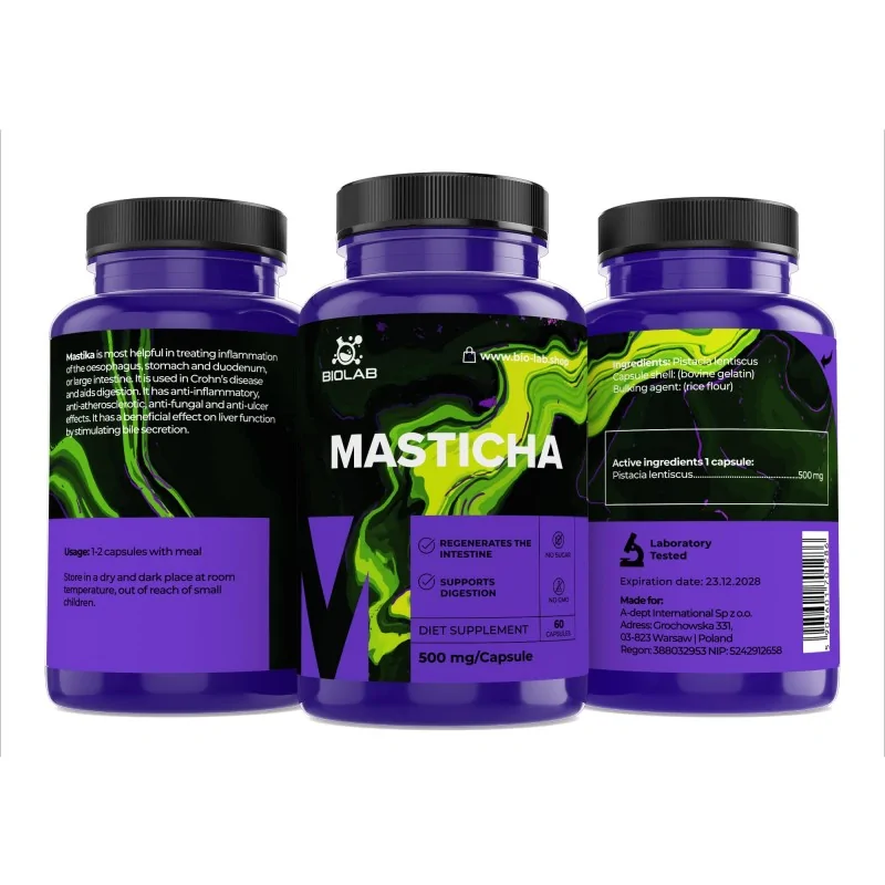 Who is this supplement for? For people who want to support the comfort of the digestive system and the proper functioning of the mucosa. In the scientific literature, mastic is sometimes discussed in the context of balancing the digestive tract and supporting conditions that promote proper bowel function. Regular use of mastic can support a daily routine focused on digestive comfort. Mastika is also analyzed in the context of markers of the body's response. It can be chosen for periodic complaints such as hyperacidity, bloating, belching, reflux or heartburn.